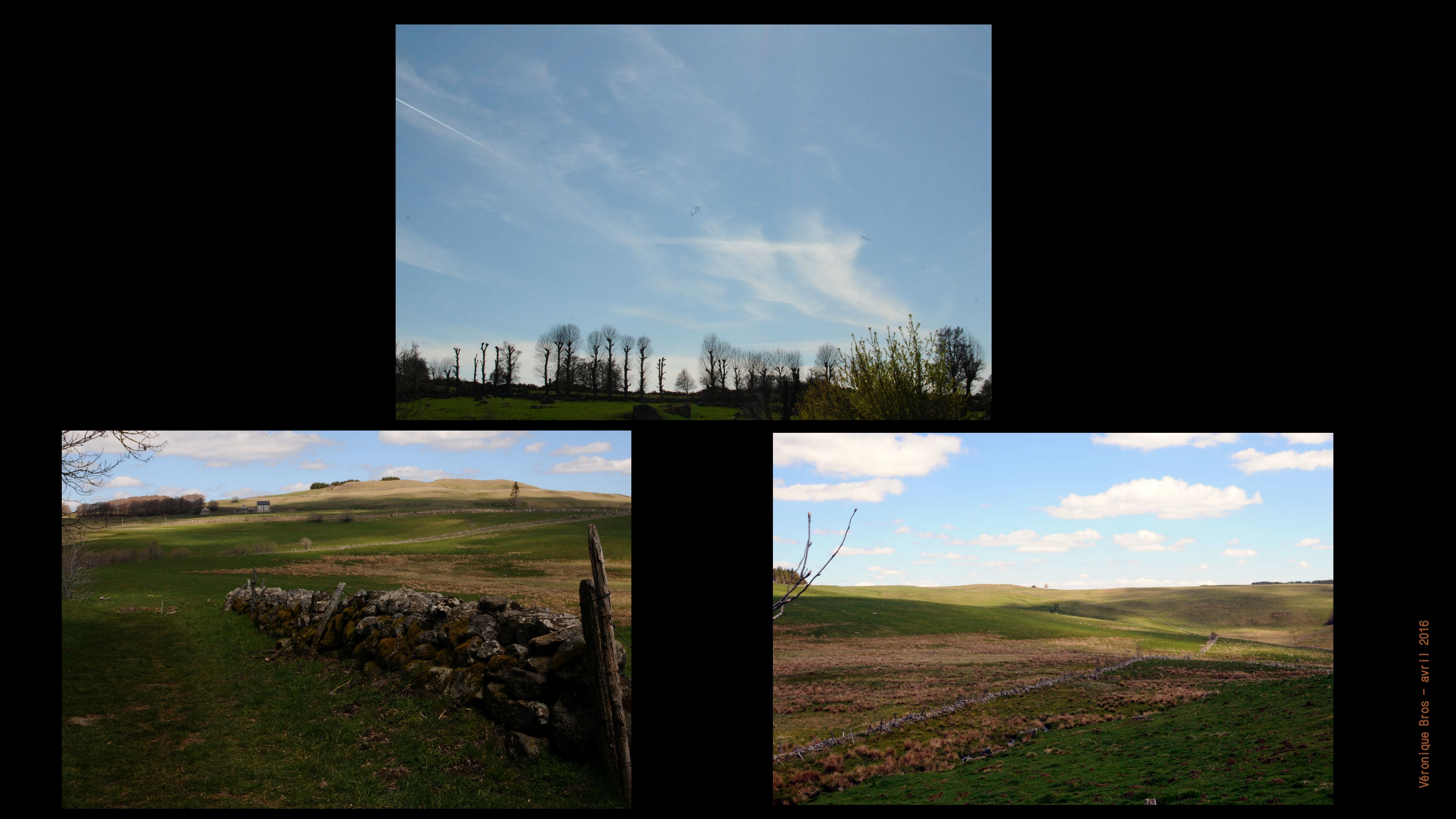 Aubrac superbe. Perles jaunes dans les prés. Colliers, parures, pour poitrines rondes et grasses, parcourues de ruisseaux chantants. Tourbières. Pas qui chuintent dans les prés gorgés. Ciel bleu immense. Campaniles multiples. Arbres, bosquets, alignements au gré de l’eau. Vaches paisibles. Chevaux trapus au poil épais. Veaux, poulains sautillants maladroits.